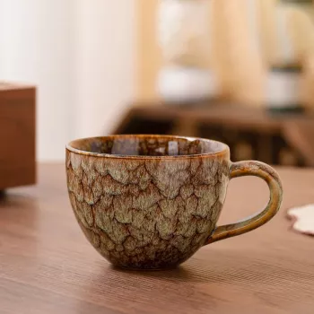Cream Yellow Ceramic Mug with Cute Floral Design – Korean Style Coffee Cup