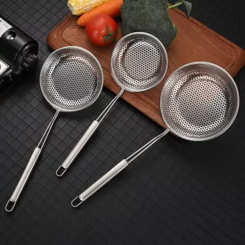 Stainless Steel Colander Skimmer with Long Handle – Oil Filter & Noodle Strainer